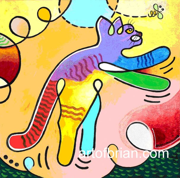 Jumping Cat With Butterfly (Cat #2 of a Series) This painting is inspired by a life gesture drawing of our cat jumping after a butterfly in our backyard.
