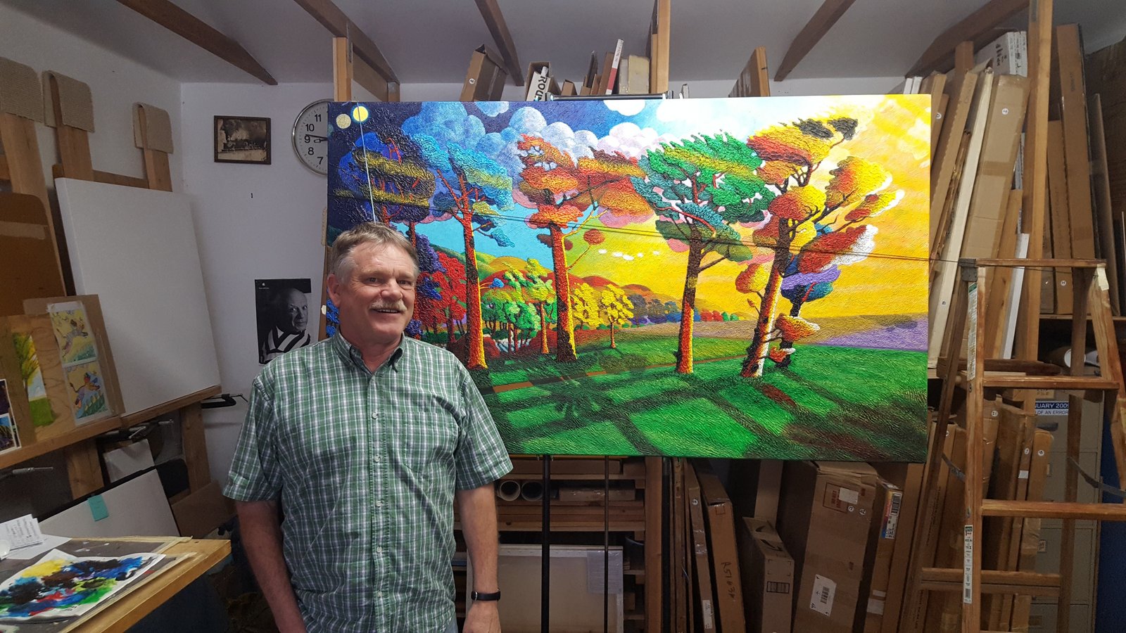 I am an open creative artist. I want to share my Art with the world. Here I am in my Studio (my wife calls it our garage!).